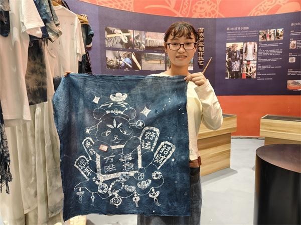 陈雯雯展示创意苗族扎染作品。李怡蒙/摄