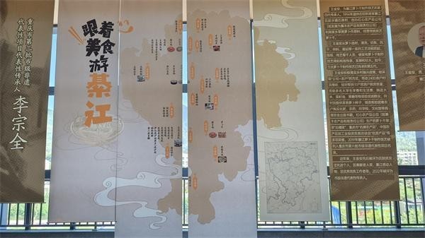 重庆市綦江非物质文化遗产馆“綦味乡愁”板块展示的綦江美食地图。重庆移通学院供图