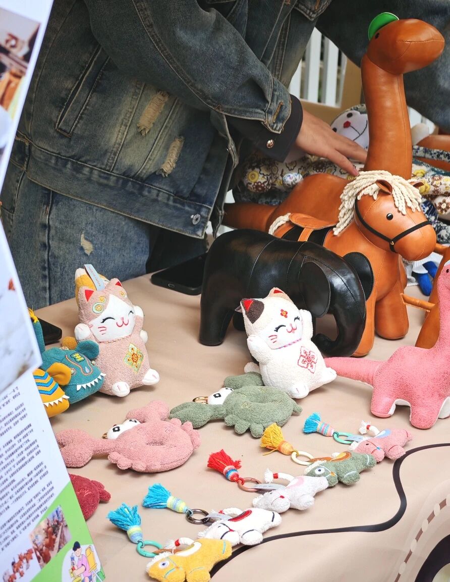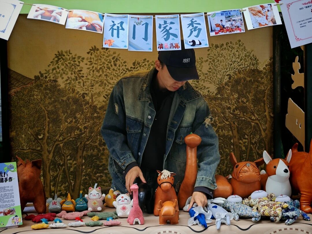 “祁门家秀”摊位上的布艺玩偶,每一针都藏着温度。这项斩获“浙派好礼”金奖的非遗手艺,正因一份特别的助力被更多人知晓。