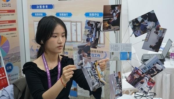来自东北师范大学的参赛学生正在布置项目展位。雷乾昊/摄