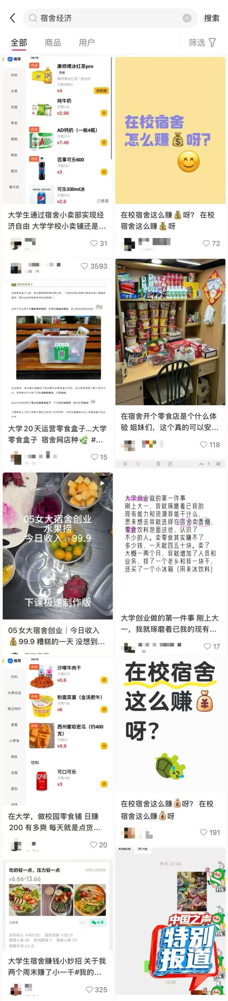 部分学生在社交平台分享自己校园创业的经历(记者截图)。来源:中国之声