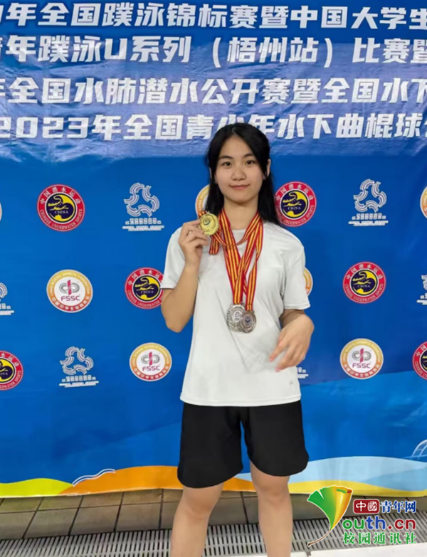 取得如此显赫的成绩,离不开她从五岁就开始学习游泳,十二岁开始参加各大小比赛的经历和成长。她除了是桂林理工大学2022级的本科生外,还是一名国家一级运动员,虽然她因为种种原因没能走专业运动员的道路,但她无论在哪里,都依然对游泳这项运动怀揣着深深的热情。
