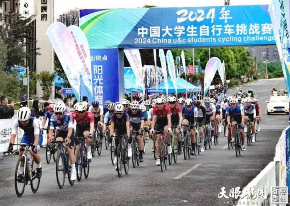 5月12日,2024年中国大学生自行车挑战赛公路赛在清镇数谷大道开赛。