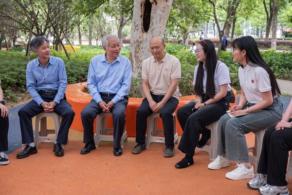 田子渝、徐方平和徐信华三位教授与青年学子谈话。