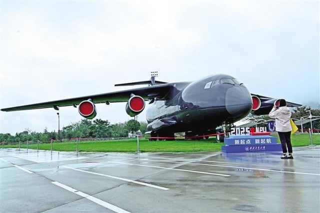 在室外展场航空展区,米格-15比斯、歼-6甲、歼-7、歼-8、直-5、强-5、初教-6、歼教-7等飞机列队而立。“米格-15比斯战斗机曾在抗美援朝战争中大放异彩。歼-8的诞生,标志着我国正式迈入自主研发高空高速战斗机的时代。轰-6甲曾在新型武器试验中立下功勋。这架在研制阶段制造的全尺寸、多功能物理样机,在运-20研制过程中发挥了重要作用。”工作人员滕迪介绍。如今,这架运-20物理样机成为西北工业大学面向社会开展国防和爱国主义教育的重要宣传载体。