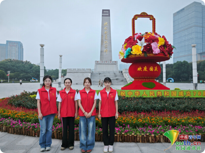 图为宣讲团成员在秋收起义纪念碑前留影。刘齐欢睿 供图