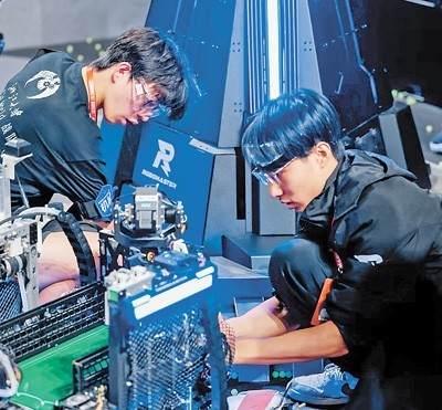 浙江大学信息与电子工程学院团队参加机器人大赛。