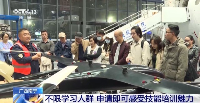 在广西交通技师学院,学习无人机课的学员们先在阶梯教室进行理论培训、然后到专业机房进行模拟操作,最后在试飞场实操试飞。免费享受和专业大学生一样的学习待遇。