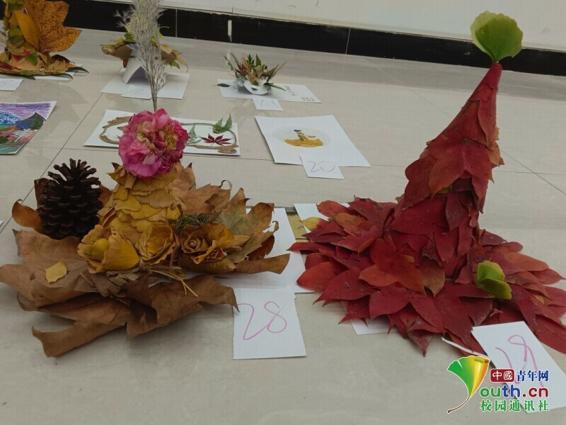 图为落叶创意作品展示区的一角。彭梦湘 供图