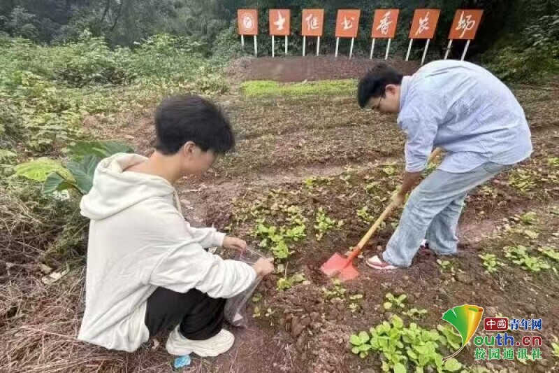 重庆理工大学学生在士继书香农场开展土壤采样与田间管理实践。洪俞婷 供图