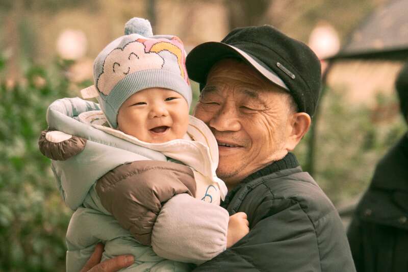 祖孙相拥,笑容灿烂。