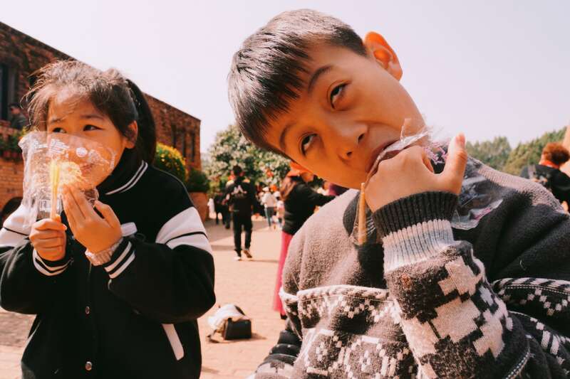 阳光下的孩童,分享着简单的糖果,脸上洋溢着无忧无虑的欢笑。