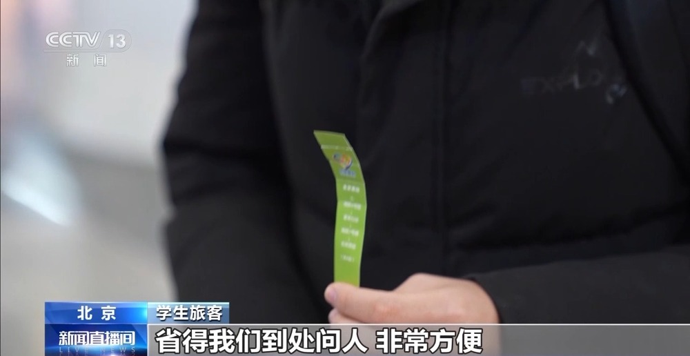 学生旅客:换乘还有小彩条指引,里面有换乘路线、实际距离、换乘火车站服务热线等,省得我们到处问人,方便很多。