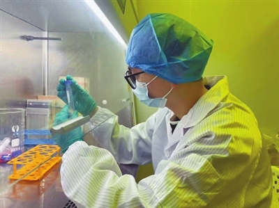 湖南大学博士生梁邦朝在研究生物3D打印材料。