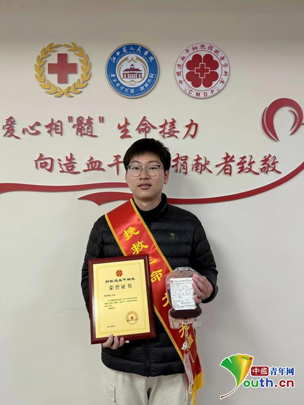 中国青年网北京4月15日电(记者 李华锡)近日,在江西省人民医院红谷滩院区的造血干细胞采集室内,一袋承载新生希望的“生命种子”被郑重封存。它的捐献者,是26岁的江西师范大学马克思主义学院2023级研究生、来自红色故都瑞金的青年党员钟易杭。毕业前夕,他用一场跨越千里的“生命之约”,为自己即将完成的硕士学业,也为即将开启的博士征程,留下了一份特殊而炽热的毕业礼。
