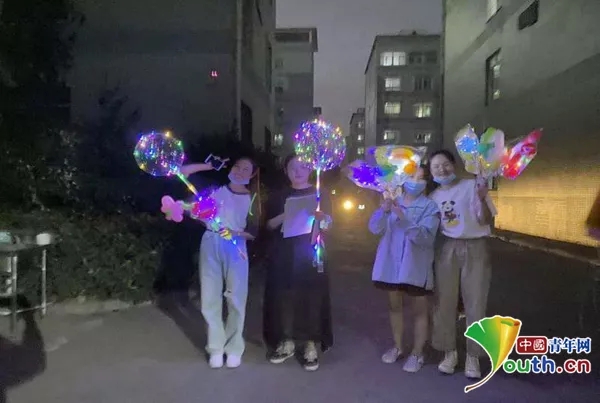 10月11日,隔着校门栅栏,张小文接过跑腿小哥送来的一大捧鲜花,一路嗅着花香回到寝室。回到寝室,她就开始和室友们麻利地分扎、装饰花束,还捏出了色彩缤纷、造型各异的气球。大家一起“工作”时的欢声笑语,让小文忘却病痛,憧憬起无病无痛的美好未来。