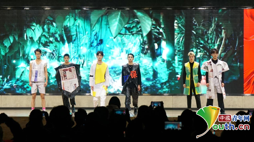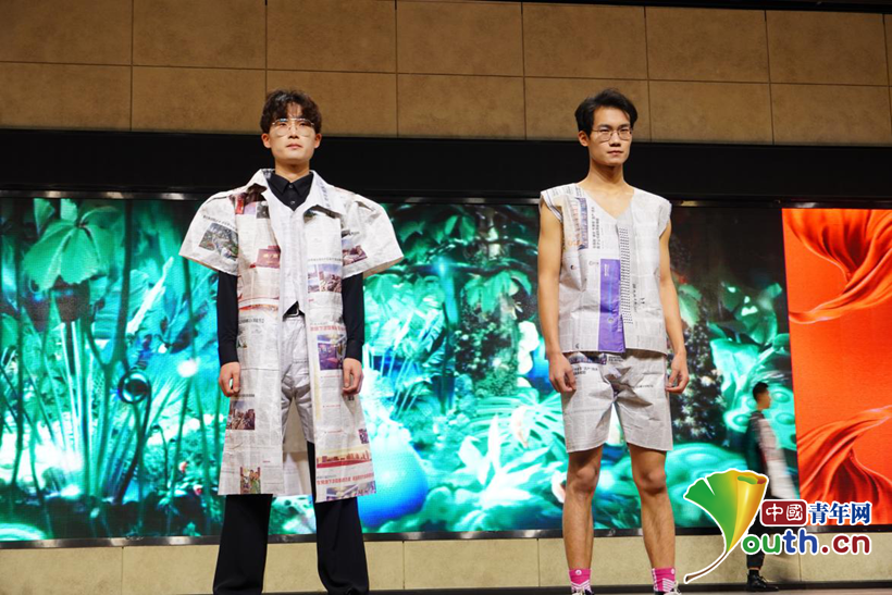图为学生身着环保服装登台展示。中国青年网通讯员 吴远昊 供图